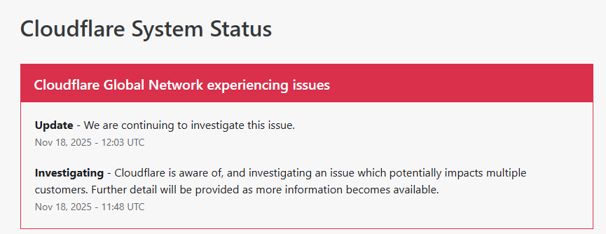 UPDATE (12:37 UTC): Cloudflare teams are still working on issue and making sure to work for full recovery. Meanwhile, according to them some services may still be facing issues. Following is recent update from them.